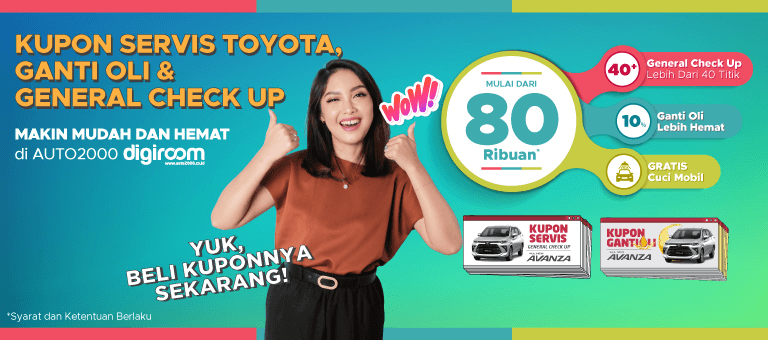 Dengan kupon servis Toyota dari Auto2000 Digiroom, AutoFamily dapat melakukan ganti oli dan general check - up dengan lebih mudah. AutoFamily bisa menggunakan nilai yang ada di dalam kupon servis Toyota untuk mendapatkan beberapa layanan seperti ganti oli dan general check up dengan lebih hemat mulai dari Rp 80 Ribu.